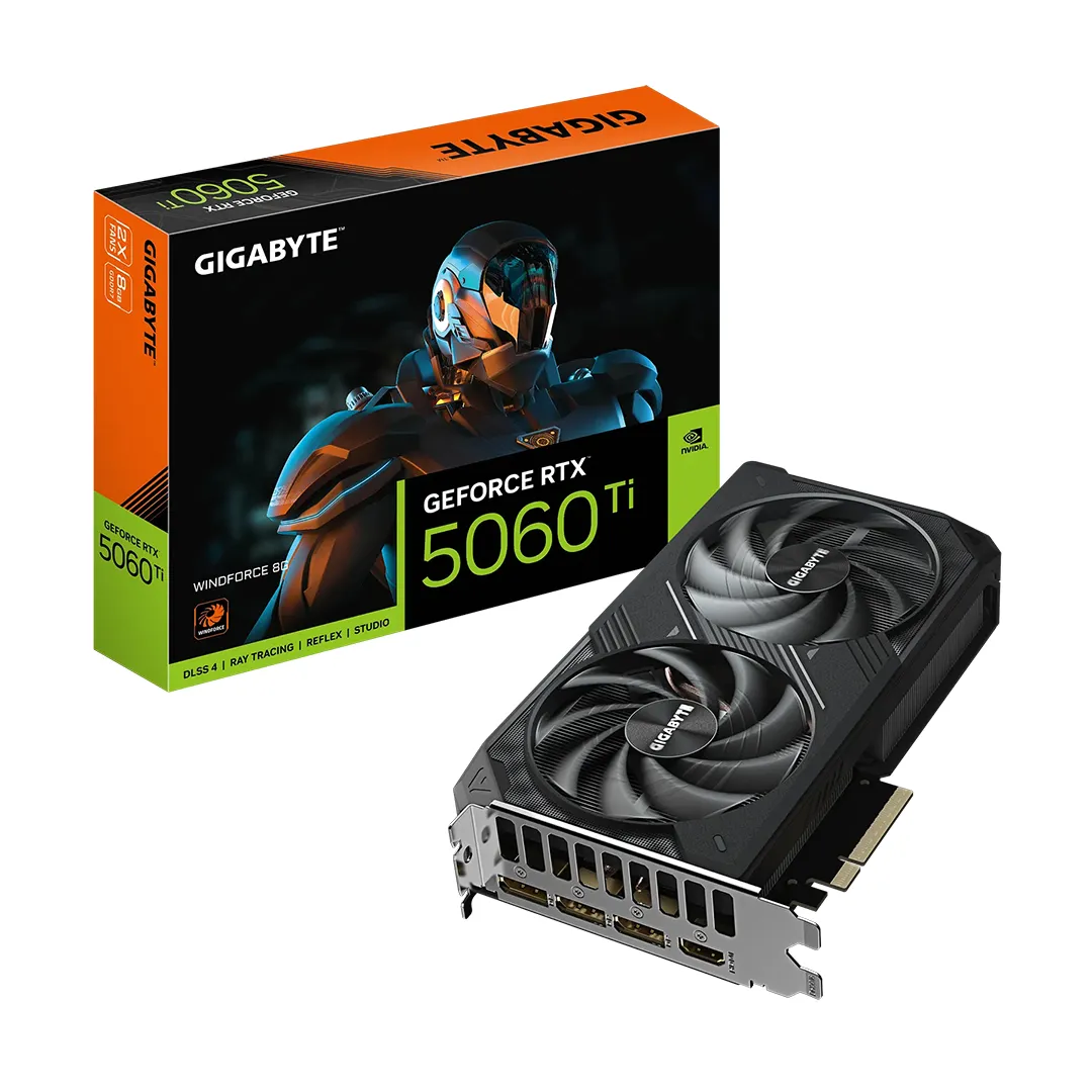| Gigabyte RTX 5060 Ti Windforce OC | 8GB GDDR7 | 2587 MHz | 2 | 208x120x40 mm | WINDFORCE |