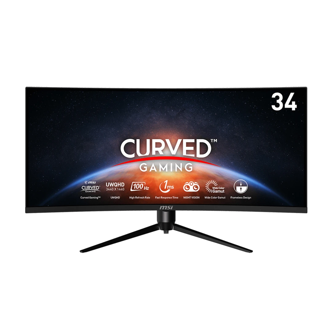 مانیتور ام اس آی MAG342CQPV با طراحی خمیده 1500R، کاربر را در مرکز تصویر قرار میدهد و میدان دید طبیعیتری ایجاد میکند. این ویژگی باعث میشود هنگام اجرای بازیهای سینمایی، مسابقهای یا تماشای فیلم، حس غوطهوری فوقالعادهای را تجربه کنید.